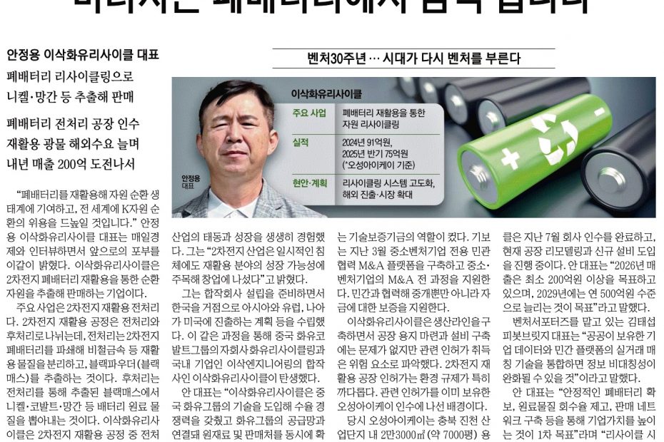 이삭엔지니어링, 2분기 수주회복+자원순환 신사업 속도 “실적 턴어라운드 기대” admin@flexion.co.kr2025년 7월 29일이삭엔지니어링, 2분기 수주회복+자원순환 신사업 속도 "실적 턴어라운드 기대"